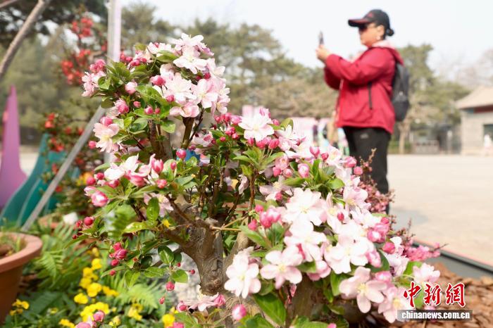 3月26日,游客在北京陶然亭公园观赏海棠。 中新社记者 易海菲 摄