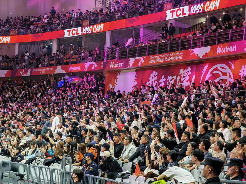 观众在武汉体育中心体育馆观看国际篮联女篮世界杯资格赛。新华社记者 乐文婉 摄