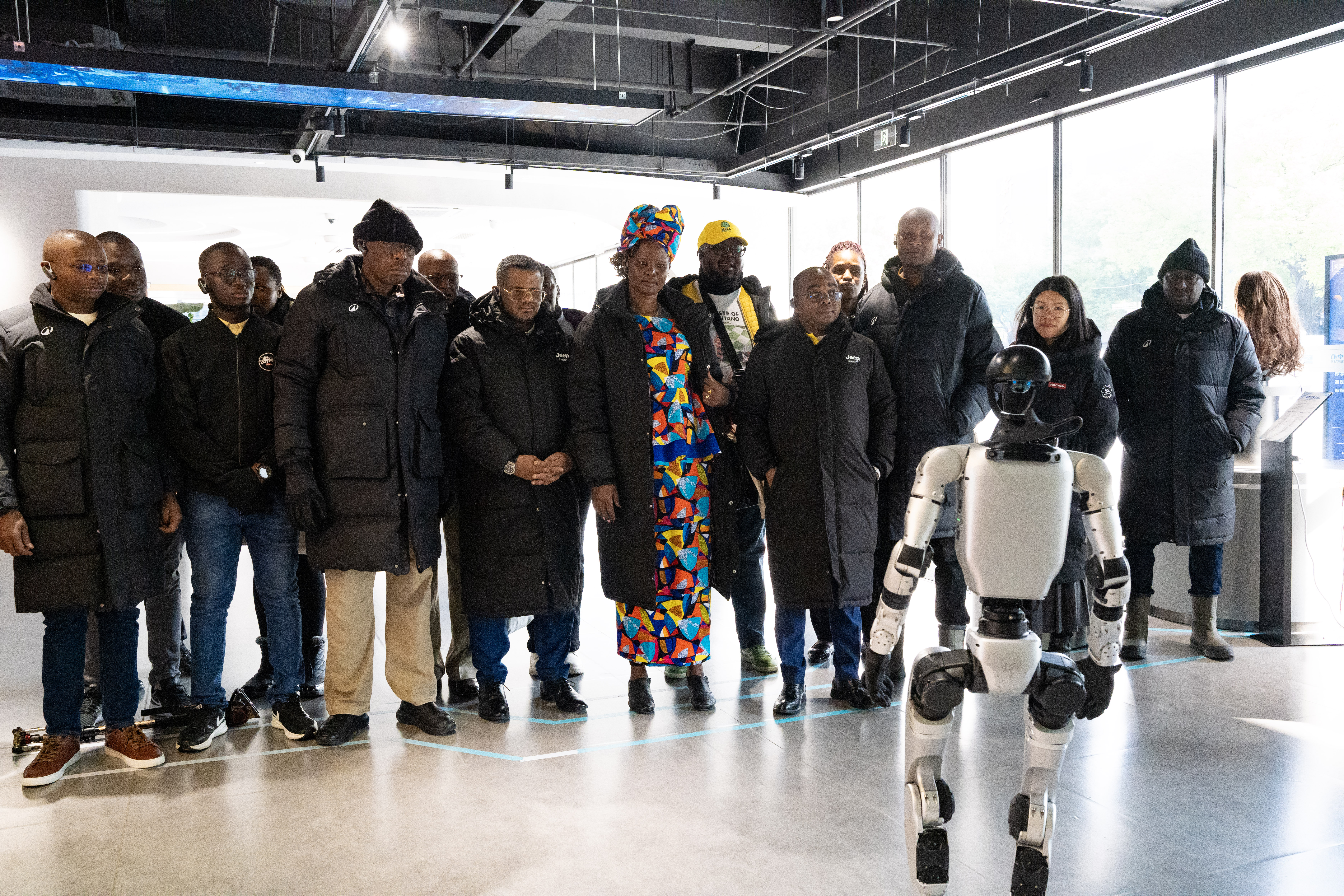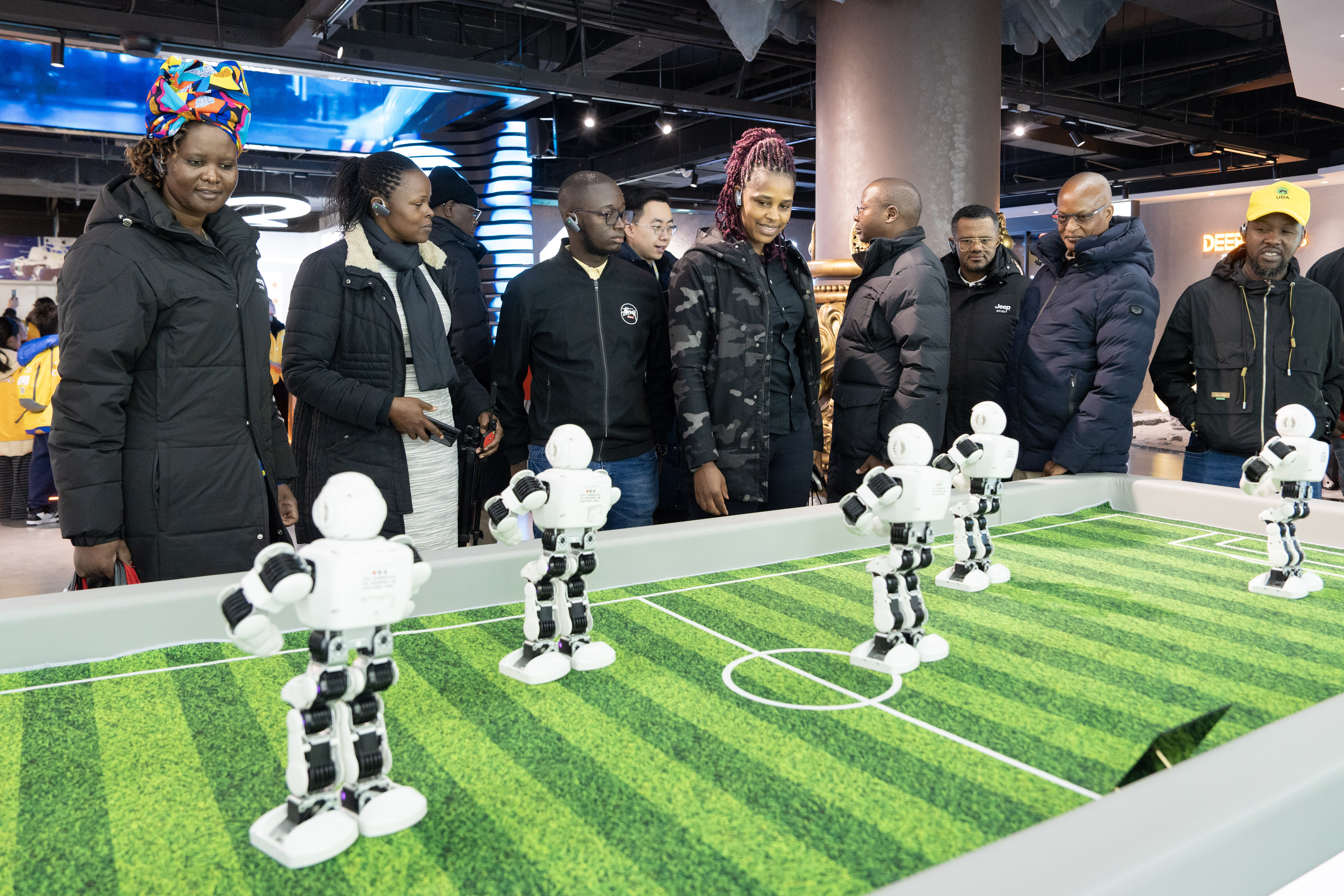 2026年2月2日,肯尼亚联合民主同盟干部考察团成员在杭州观看小型机器人舞蹈。 吴君毅 摄