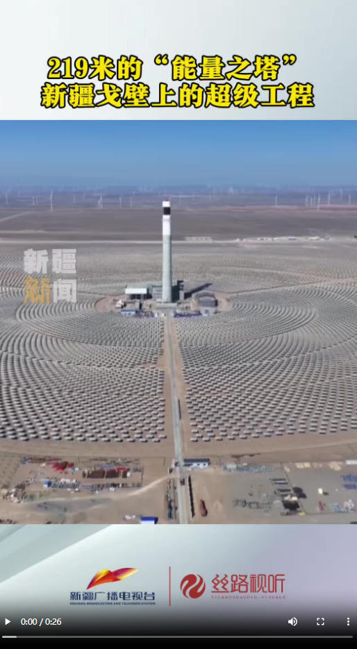 新疆广播电视台/丝路视听讯(记者:李娜 于梦冉 编辑:加依娜尔)在新疆哈密,一座219米高的吸热塔矗立戈壁,成为全球单期规模最大“光热储”一体化项目的核心地标。项目总装机1500兆瓦,目前吸热塔砌筑已全部完成,上塔熔盐管道安装完成80%,预计10月底具备并网条件,年底塔体将点亮。建成后年发清洁电30亿度,为国家能源转型注入强劲动力。