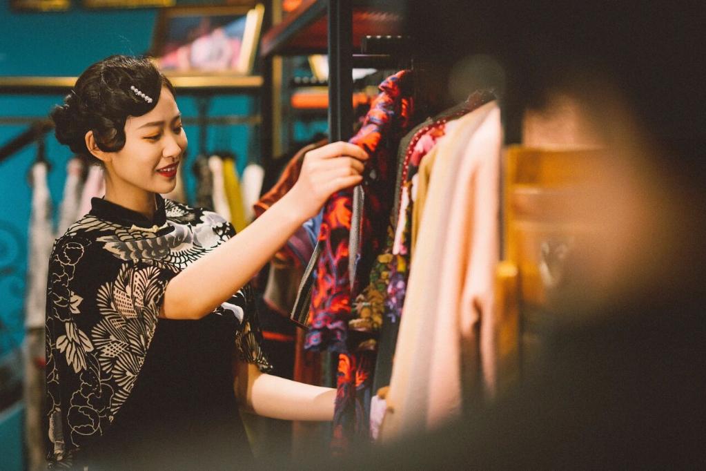 郑州中牟,游客在建业电影小镇挑选旗袍。新华社发