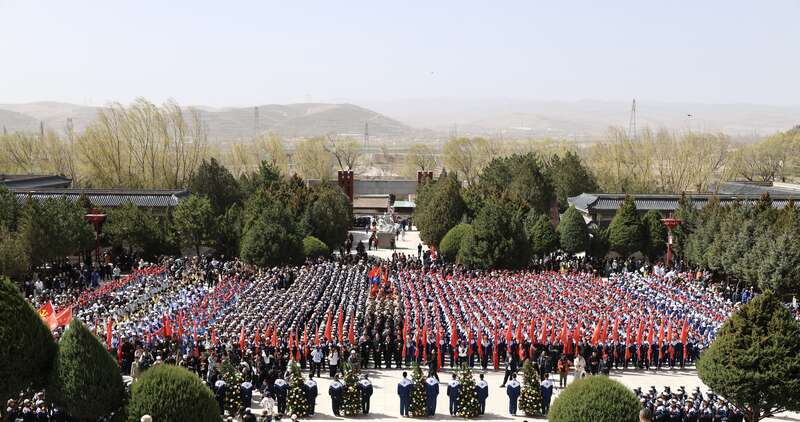 4月3日上午11时许,2400多名大中小学生,齐聚位于宁夏固原市彭阳县古城镇的任山河烈士陵园内,祭奠英烈。中青报·中青网记者 焦敏龙/摄