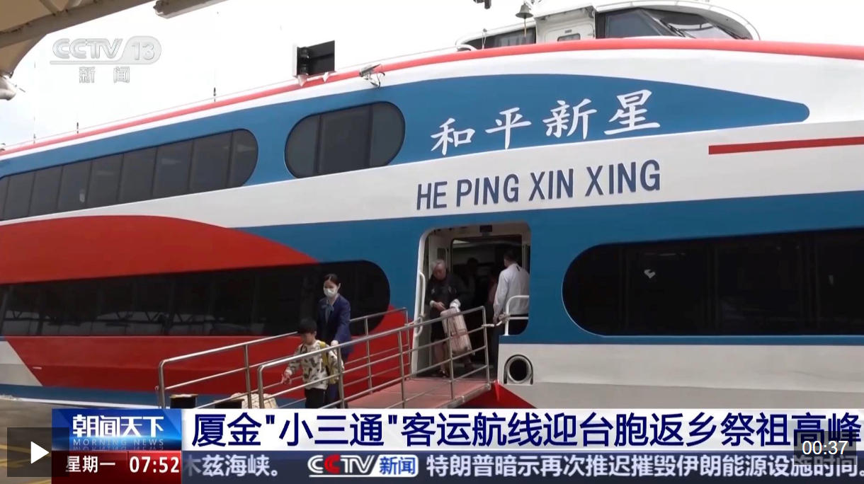 据了解,厦金“小三通”客运航线因其航程短、班次多、经济、便捷等优势,成为不少台胞返乡祭祖的首选。预计清明三天假期,厦金“小三通”客运航线旅客量近2万人次,较3月日均客流增幅超12%。