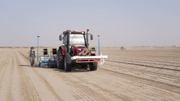 伴随着搭载北斗导航系统的播种机发出阵阵轰鸣,铺膜、铺设滴灌带、播种等工序一气呵成。连日来,新疆“超级棉田”又迎来了新一季春播的忙碌时节。