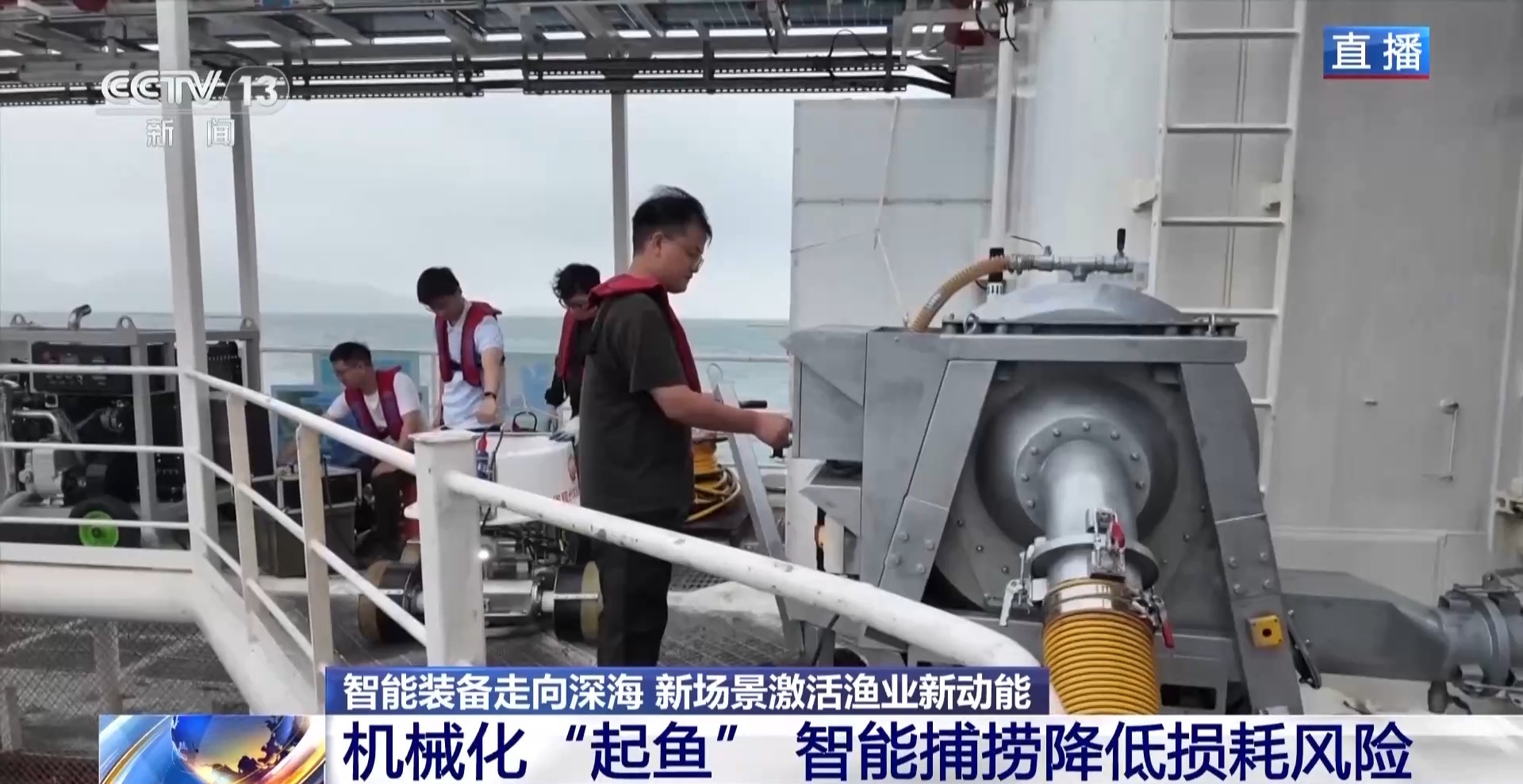 最后,再来看看“起鱼”的设备。过去捕捞活鱼常常依赖人工围捕,不仅耗时耗力,还容易造成鱼体损伤。而现在,这里已经用上了高效活鱼捕捞装备。分别有离心吸鱼和真空吸鱼两种模式,可以根据鱼的规格和品种进行选择。离心吸鱼适合小规格鱼类,可以连续抽吸;而大规格鱼类,则通过负压方式“轻柔吸入”,有效降低鱼体损伤。不仅捕捞效率大幅提升,也更好地保障了鱼的品质,让这些海产品以更好的状态进入市场。