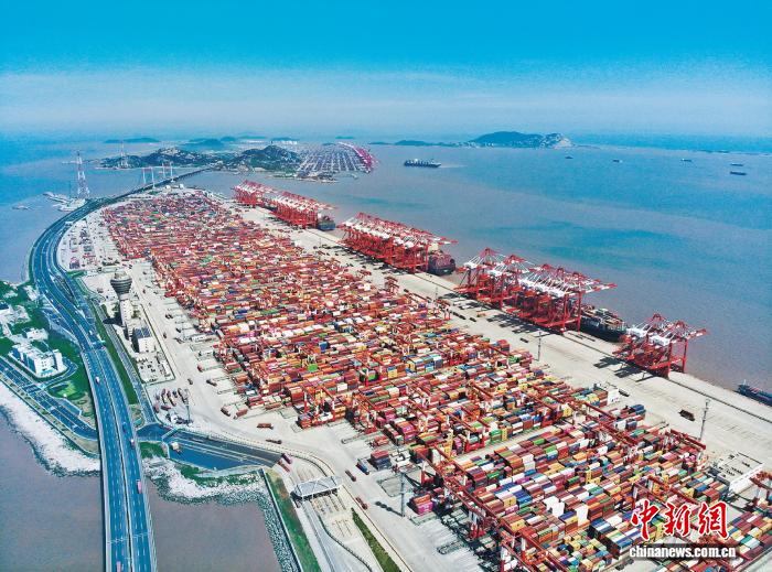 上海洋山深水港一、二、三期码头。(上港集团供图)