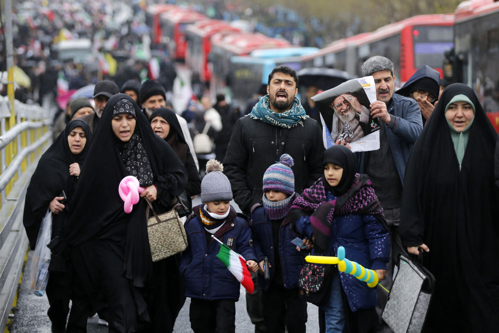 3月13日,人们在伊朗首都德黑兰参加集会。(沙达提 摄)