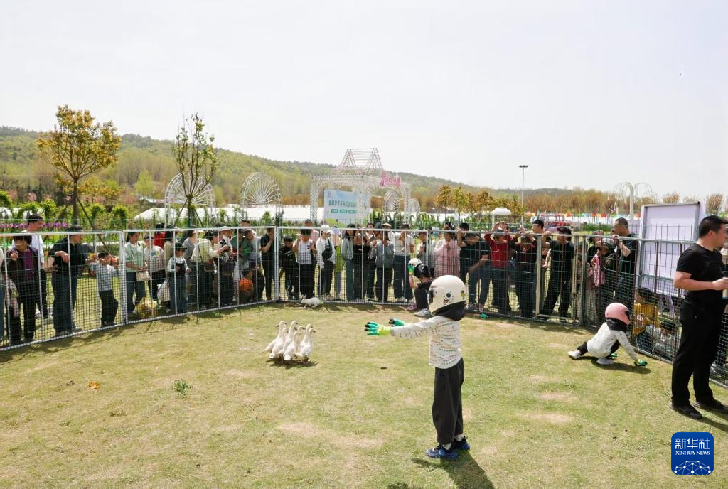 襄阳市襄城区卧龙镇朝阳村“卧龙月季花海”举办的春季趣味活动。新华社发