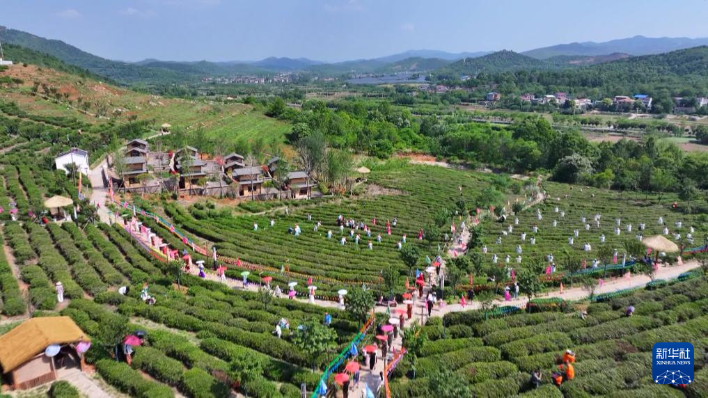 孝感市孝昌县周巷镇孝孟红生态观光茶园举办的茶叶采摘活动。新华社发