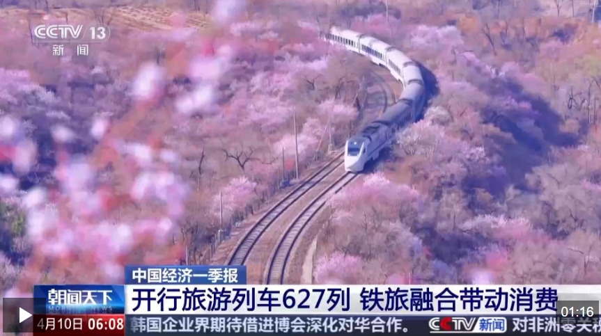 国铁集团客运中心市场营销部副总监 张涛:我们深化与政府部门、行业协会、票务平台等合作,定制化开行“歌迷专列”“球迷专列”“研学专列”“赏花专列”等主题列车,激活“主题列车+”经济,打造消费新场景,促进了消费新业态发展。