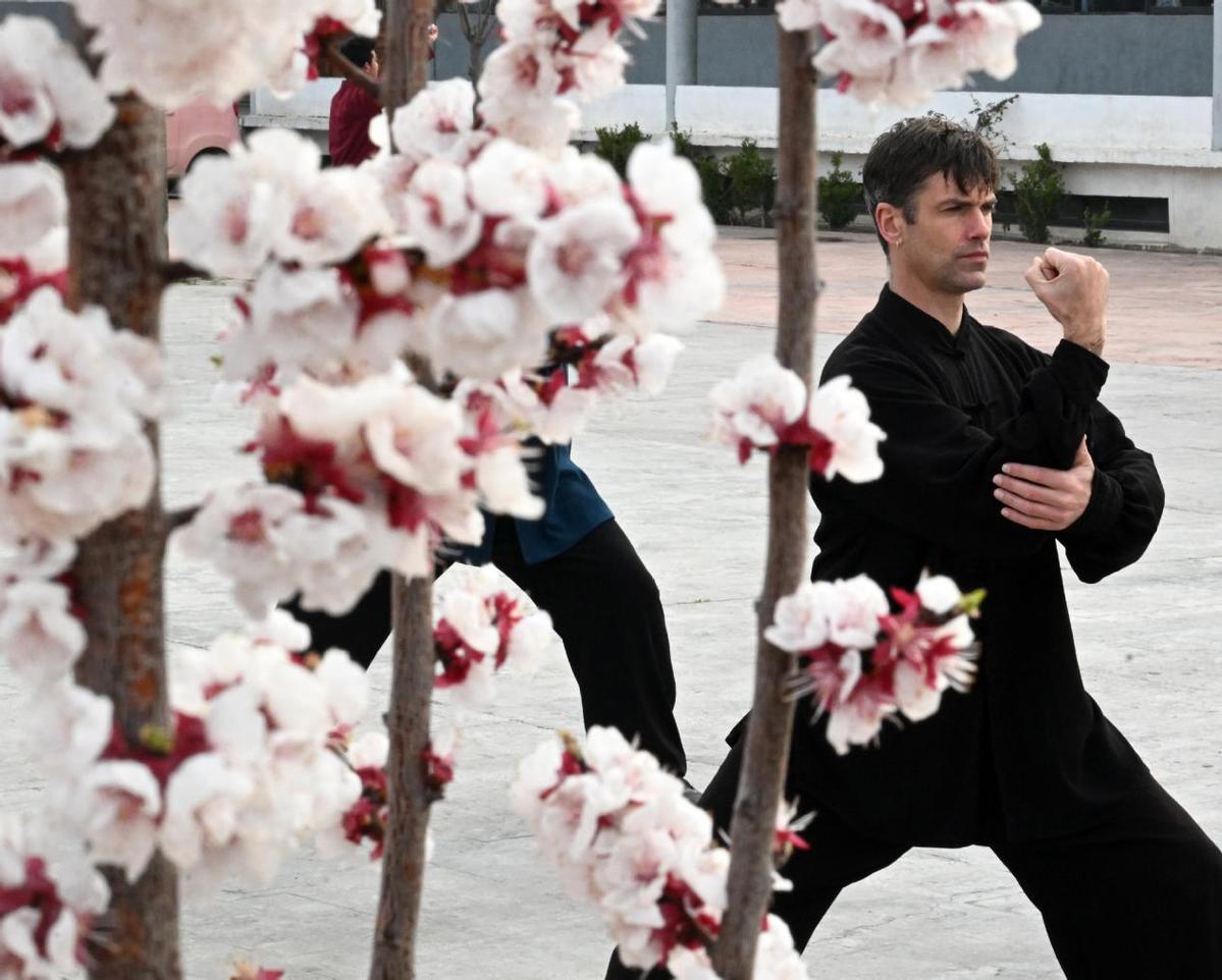 来自法国的柯林习练太极拳(3月16日摄)。(图片来源:新华社)