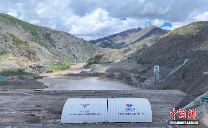图为西藏帕孜水利枢纽工程主坝正式封顶。中国水电基础局供图