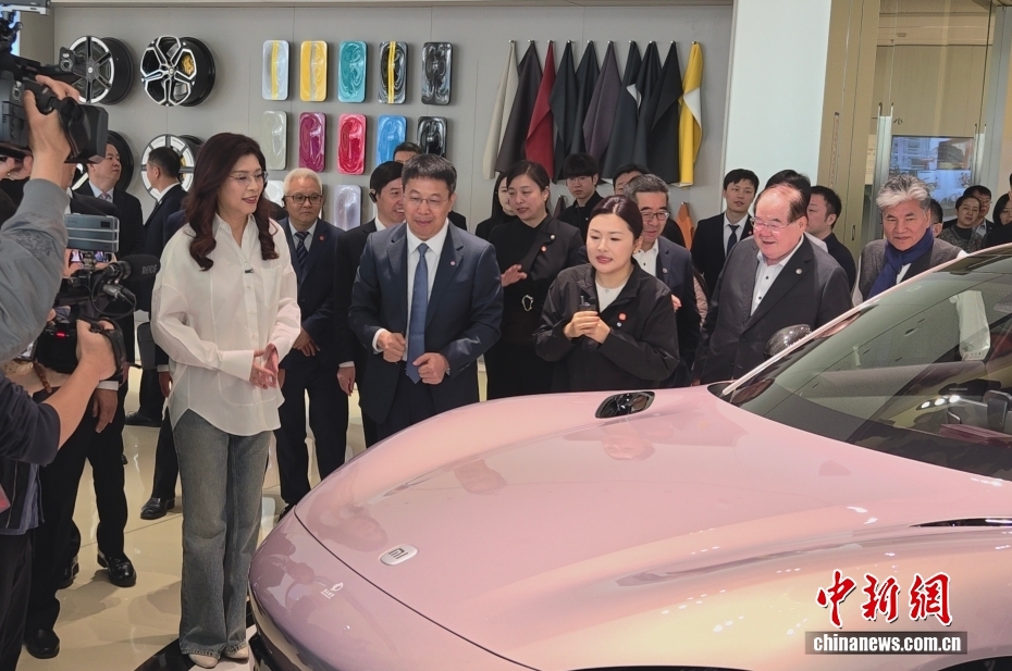 4月12日,中国国民党主席郑丽文(左一)一行在北京参观小米汽车工厂。