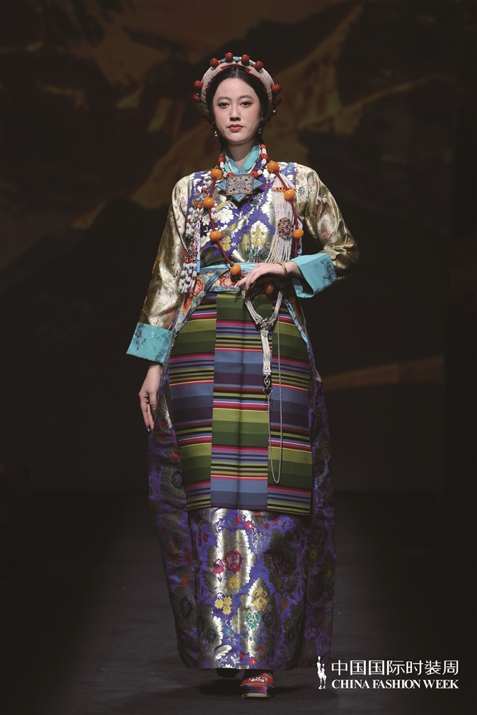 谈起2026年中国国际时装周(春季)“冈仁卓嘎·郭蓉蓉时装发布”大秀,班珠丹塔表示,此次亮相的七套藏装作品,宛如七颗精心雕琢的宝石,完美呈现了西藏服饰文化的独特魅力。在服装设计中,他深度融入国家级非遗氆氇织造、堆绣及金银器錾刻、掐丝等传统技艺,既完整保留藏装盛装的庄重仪式感与常服的实用适配性,又跳出传统复刻的局限。在色彩搭配、面料选择、结构剪裁与首饰搭配上注入当代审美,让四套古典盛装与三套季节常服兼具历史厚重感与时尚潮流感。