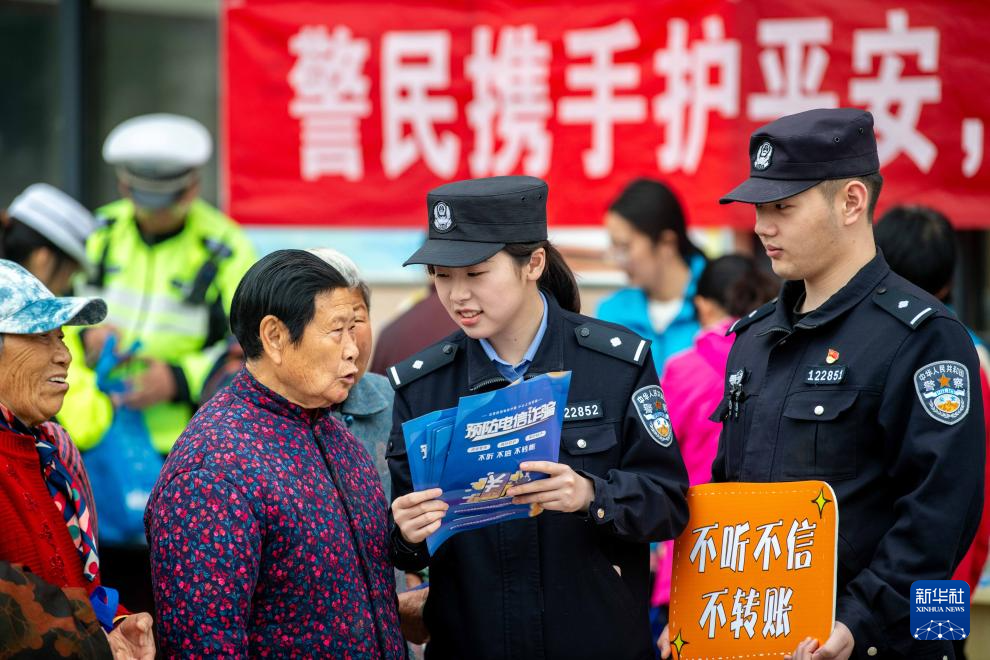 4月14日,民警在贵州省黔西市水西派出所门口向群众宣传国家安全知识。