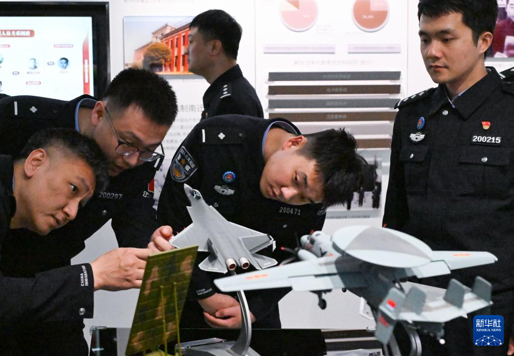4月14日,南京出入境边防检查站的民警在江苏省南京市全国国家安全教育基地参观。