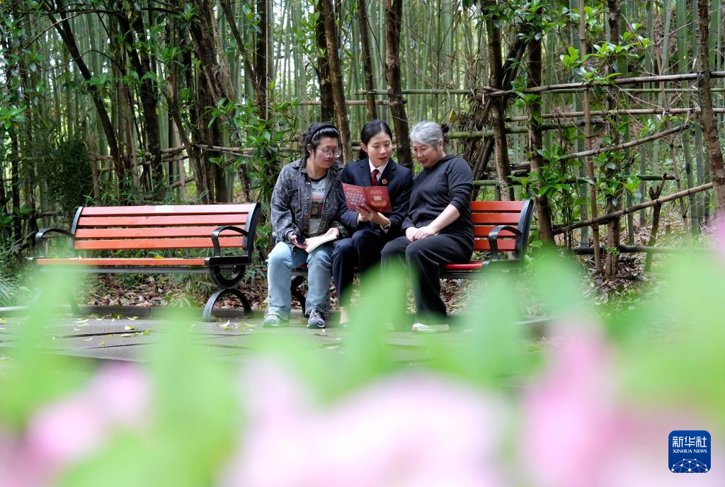 4月14日,浙江省德清县人民检察院检察官在法治文化公园给群众讲解国家安全知识。