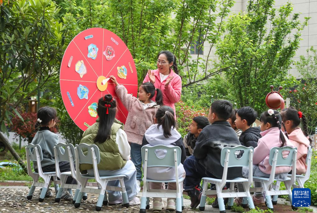 4月14日,在江苏省句容市北部新城幼儿园,小朋友通过互动游戏了解国家安全相关知识。