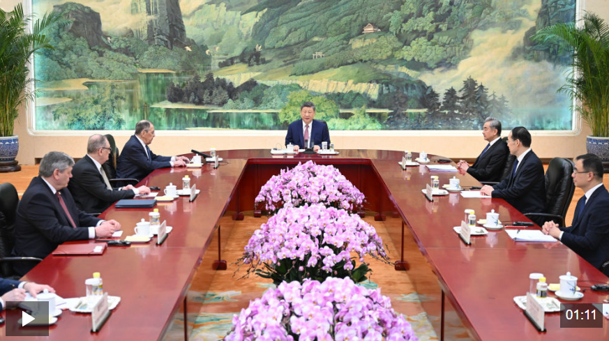4月15日上午,国家主席习近平在北京人民大会堂会见俄罗斯外长拉夫罗夫。