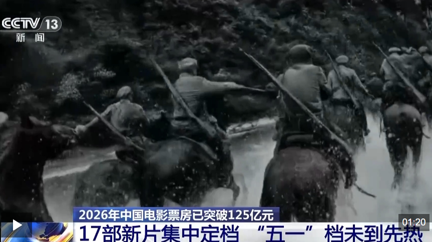 据网络平台数据,2026年中国电影票房(含预售)已经突破125亿元。目前,已有17部新片定档五一档,涵盖动作、喜剧、悬疑、动画、历史战争等多种类型。