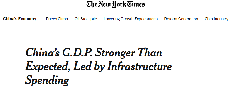 报道同时注意到,3月份中国工业增加值同比增长5.7%,强于市场预期,电子设备、汽车、半导体和机器人等产品的外部需求依然较强,出口仍将是今年推动中国经济的重要力量。