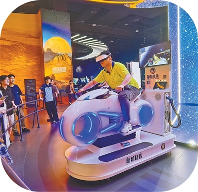 参加两岸交流活动的台湾青年在广东珠海太空中心体验互动项目。新华社记者 许晓静摄(人民视觉)