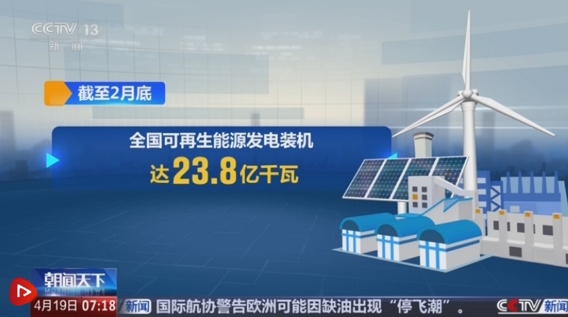 近40亿千瓦——这是截至今年一季度,我国的电力总装机规模。这个体量大约是美国的三倍,稳居世界首位,占全球近三成。体量增大的同时,能源供应结构也在发生明显变化。一季度,规模以上工业水电、核电、风电、太阳能发电等清洁能源发电量0.7万亿千瓦时,同比增长2.8%,占规模以上工业发电量的33.2%,清洁能源占比显著提升。截至2月底,全国可再生能源发电装机达23.8亿千瓦。专家表示,预计一季度,我国新增发电装机中,风电、光伏等可再生能源占比达到70%左右。可以说,新增发电装机中,三分之二以上都是清洁能源。能源“家底”更厚了,也更绿了。