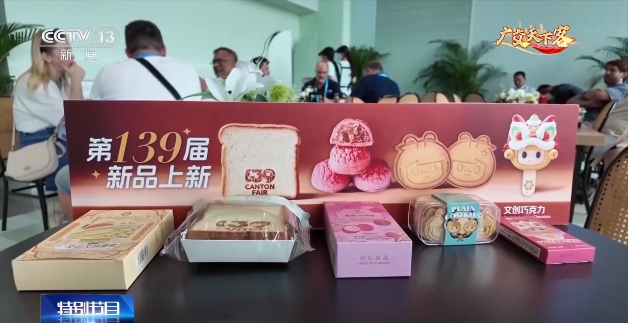 除此之外,本届广交会还同步推出了印有展会标志元素的面包、曲奇,以及岭南特色手信荔枝酥。这些文创食品分布在展馆多个小卖部、咖啡厅,累了渴了,随手买一件,瞬间能量满满,继续逛展。