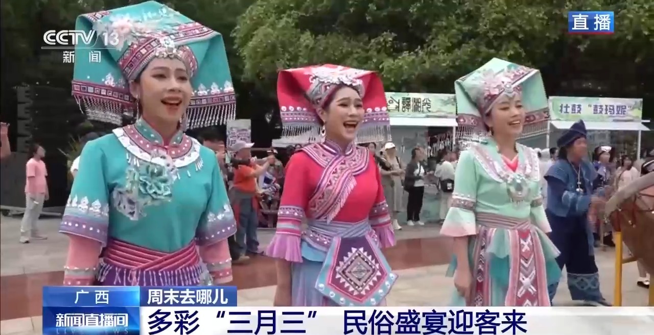 今天是农历三月初三,俗称“三月三”,是壮族、苗族、瑶族、布依族等多民族共同欢庆的传统节日,承载着祈福迎春、以歌传情的深厚民俗传统。