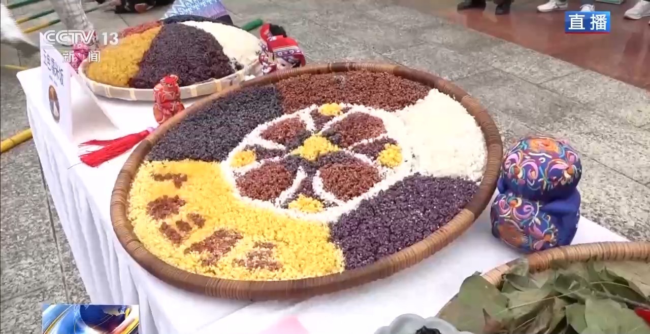 除了巡游展演外,这次望谟“三月三”活动中,在广场搭建了互动体验区,打造消费新场景,游客们可以分批进入现场体验。这里展示的就是望谟紫茶的炒制以及冲泡技艺;蜡染制作体验区,从织布到画蜡再到浸染,全流程展现指尖上的蓝白美学。在望谟,布依族“无糯不成席”。簸箕里“望谟三月三”欢迎您的字样就是用五颜六色的糯米饭拼成的。用春天鲜嫩的枫香叶、绽放的密蒙花等植物染出艳丽的色彩,每一口都带着春天的味道。