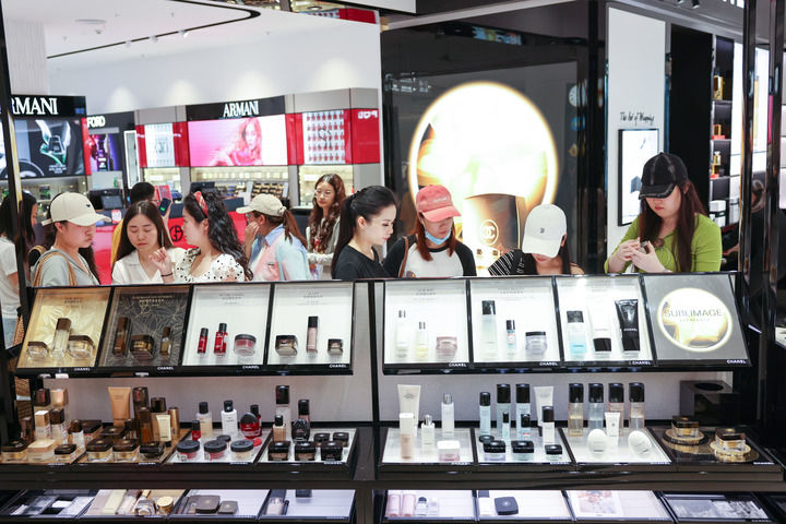 2026年3月25日,顾客在海口日月广场免税店选购商品。新华社记者 张丽芸 摄