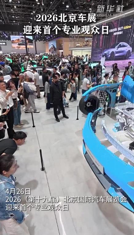 4月26日,2026(第十九届)北京国际汽车展览会迎来首个专业观众日,38万平方米的总展览面积、1451台展出车辆,其中181台首发车、71台概念车,吸引了众多参观者。