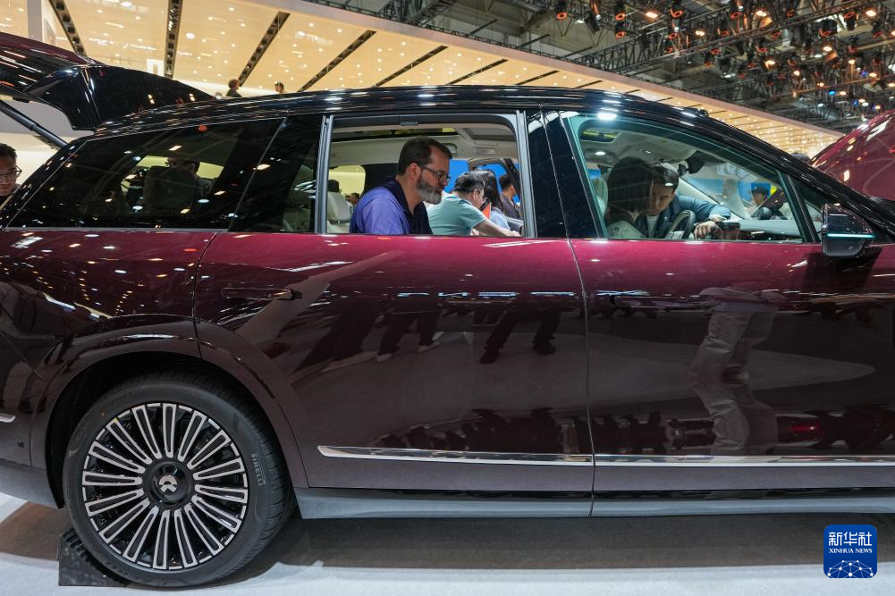4月26日,在2026北京车展上,参观者在智己公司展台参观智己LS8。