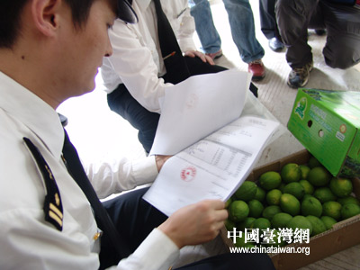 据了解,这批水果共有8个品种,包括500箱6000公斤柳橙、31箱372公斤哈密瓜、2箱20公斤柠檬以及莲雾648公斤、桃2000公斤、菠萝810公斤、番石榴3010公斤、番荔枝1506公斤,总计1497箱14366公斤水果。另据介绍,至今年五月一号,厦门口岸已进口45批15个品种的台湾水果,总重298吨,货值26.8万美元。