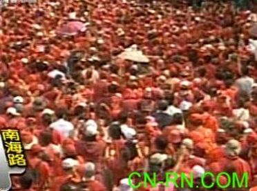 据报道,台湾东森新闻报利用直升机空拍,空拍的画面显示,上午9点钟一到,“红衫军”已经陆续在台北火车站集结。