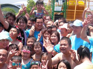 中国台湾网8月6日消息 据台媒报道,中国国民党台湾地区2008参选人马英九昨天偷得浮生半日闲,畅游宜兰国际童玩艺术节,重温童年滚铁圈的乐趣,并下水和小朋友一起打水仗;小马哥的魅力也在现场四射,所到之处民众都热情合影。