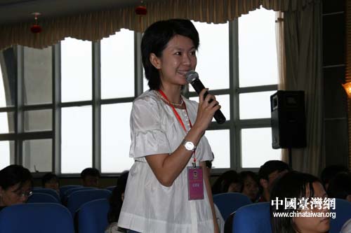记者就赣台经贸研讨会的事宜向组委会提问。(摄影:黄建文)