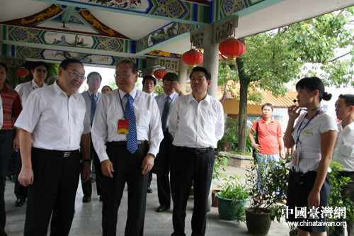 中国台湾网9月5日益阳消息 以“合作共赢,交流对接”为主题的“第三届湘台经贸交流与合作论坛”5日在益阳市隆重举行。当天下午,中国国民党副主席关中一行,在湖南省委副书记梅克保等陪同下,参观了历史悠久的益阳白鹿寺以及益阳高尔夫球场。(黄建文)