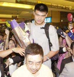 中国台湾网9月8日消息 美国职篮(NBA)第一长人,有“移动长城”之誉的大陆球星姚明,昨天下午3时40分抵台,展开3天的篮球访问之旅。姚明在抵达机场时受到球迷热烈欢迎,尖叫声不断;由于身材太高,姚明在旅客中鹤立鸡群,通关过天花板时都要低头弯腰。