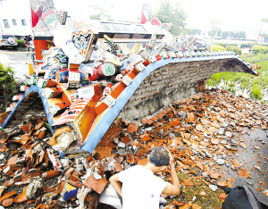 资料图:9月7日,宜兰发生6.3级地震,罗东镇40年牌楼倒塌。