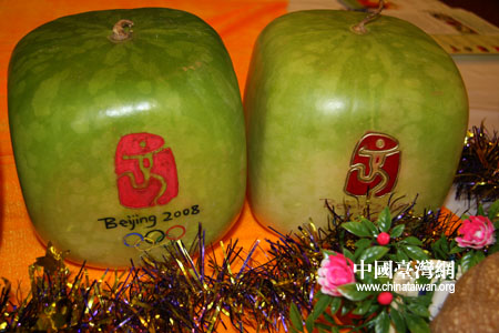 用西瓜制作成迎接奥运的特色产品。 (摄影:陈宁)