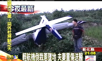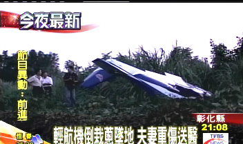 中国台湾网9月16日消息 台湾彰化县芬园乡(猫罗溪)河床,昨天下午4时43分发生一起轻航机坠落砂石场意外,飞机上驾驶褚姓夫妻,丈夫褚信坤伤势严重陷入昏迷,有生命危险,妻子游鑫桂双腿骨折,全身多处撕裂伤。