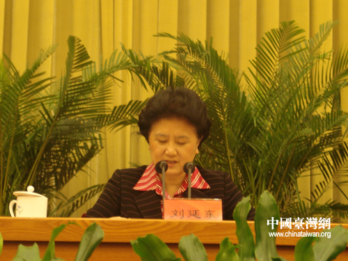 刘延东指出,在两岸同胞的共同努力下,目前台海形势中有利于遏制“台独”分裂活动的积极因素持续增多,两岸关系朝着和平稳定方向发展的趋势持续增强。但是,“台独”分裂活动仍然十分猖獗。陈水扁当局罔顾台湾同胞的利益,无视台湾社会各界和国际社会的反对和强烈谴责,顽固推动“以台湾名义申请加入联合国”的“入联公投”。他这种为一党一己之私,分裂国家,贻害台湾人民的根本利益的“台独”分裂活动,威胁中华民族的核心利益,把两岸关系推向危险的边缘。坚决反对和遏制通过“入联公投”、谋求“台湾法理独立”的“台独”分裂活动,是当前两岸同胞面临的最重要、最紧迫的任务。