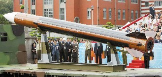 中国台湾网10月12日消息 台湾军方前天在“双十”活动中首次展示秘密研发的“天弓”三型导弹,国民党籍“立委”林郁方则引述台军方资料说,该型导弹是高风险的军品,性能不稳定。而台当局“国防部长”李天羽昨天也尴尬证实“弓三”导弹明年仍要测试。