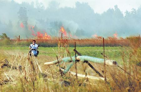 据台湾媒体报道,沙岗防风林昨天下午2时多发生大火,火舌延烧到防风林雷区,直到傍晚,高温已经引起七、八起地雷爆炸,引起附近民众关切。