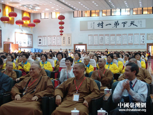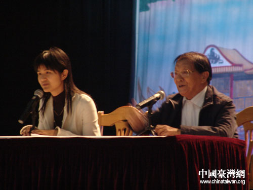 台湾同胞听华西村老书记吴仁宝介绍华西发展并观看华西农民文艺演出