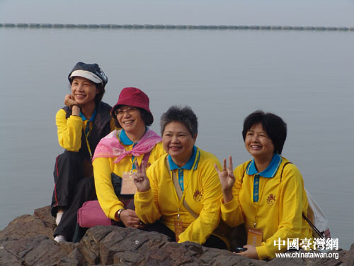 台湾同胞上午参观了太湖风景名胜鼋头渚。鼋头渚上,柔美歌声穿雾而来,跑上前去一问才知道,原来在台胞们见到心中久违的太湖,情不自禁的唱起了儿时候学唱的歌谣《太湖船》。