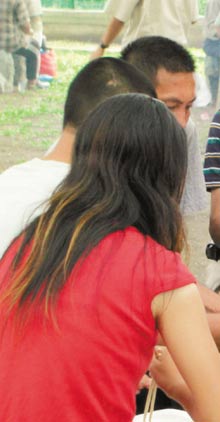 台湾游民愈来愈年轻,16岁的小玲(背对镜头长头发者)与她左边19岁的阿贤,两人在游民群中显得特别醒目。(图:联合报)