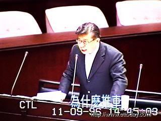 张显耀在台“立法院”质询张俊雄。(东森新闻图)
