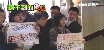 另据台湾“中时电子报”报道,陈水扁9日中午出席台湾“补习教育学会”理事长交接典礼时,又遭到青年乐生联盟的学生呛声,要求他将乐生疗养院比照中正纪念堂列为“国定古迹”,但陈水扁未做任何回应,保安人员并与学生发生推挤。
